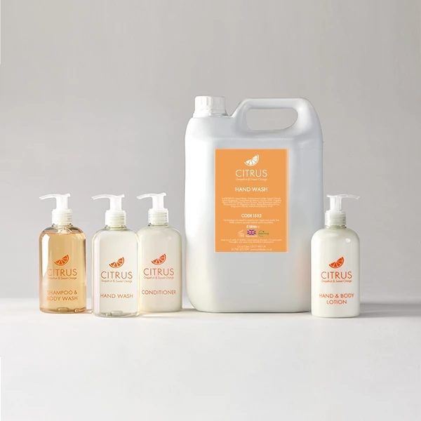 Choose Citrus Grapefruit & Sweet Orange for a bright, modern and great-smelling range of hotel toiletries.