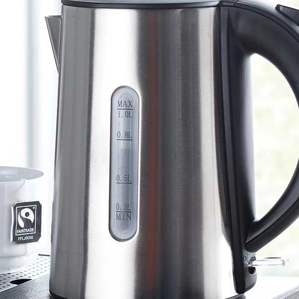 The Deluxe Hotel Kettle is an ideal fit for guest rooms. The 1 litre capacity will boil just the right amount of water and helps to reduce your running costs by preventing guests from boiling unnecessary water and wasting energy.