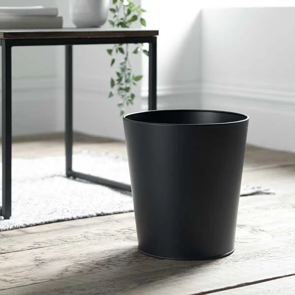 These strong, non-flammable metal bins have a powder coated finish in black that’s easy to spray and wipe clean.