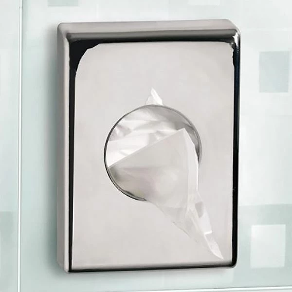 These smart chrome-finish plastic hygiene bag holders are an elegant way to display and dispense hygiene bags, and hold a carton pack of small hygiene bags (code 7253).