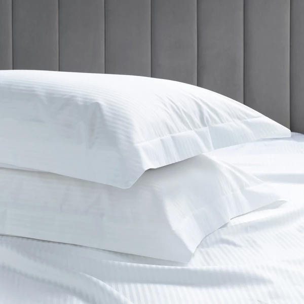 These 300 thread count 0.5 cm satin micro stripe Oxford style pillowcases are made from long staple yarn cotton, giving them the luxurious look and feel of Egyptian cotton.
