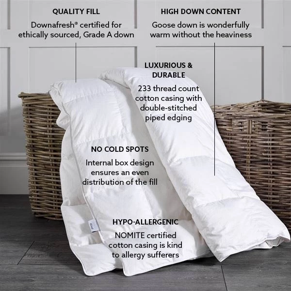 - Exceptional quality natural goose down hotel duvet used by leading hotels across the UK