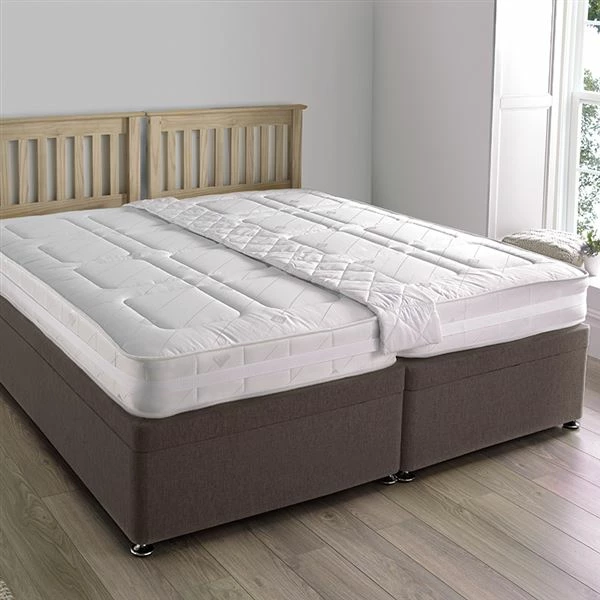 There’s no need for special beds that lock together: our exclusive Quick Link simply slips all the way around two single beds which are held together with an adjustable snap-shut plastic belt buckle.