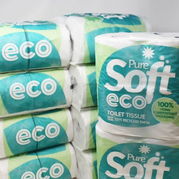 This 2 ply soft quilted toilet paper is made from 100% recycled paper and is a great value environmentally friendly toilet paper that comes in a 100% compostable wrapper.
