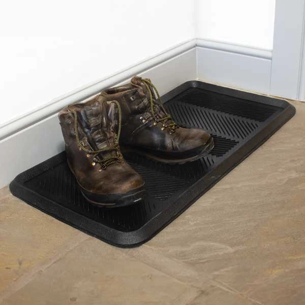 This thick black rubber molded boot tray is perfect for storing walking boots, wellies and trainers in your hallway, porch or utility room.