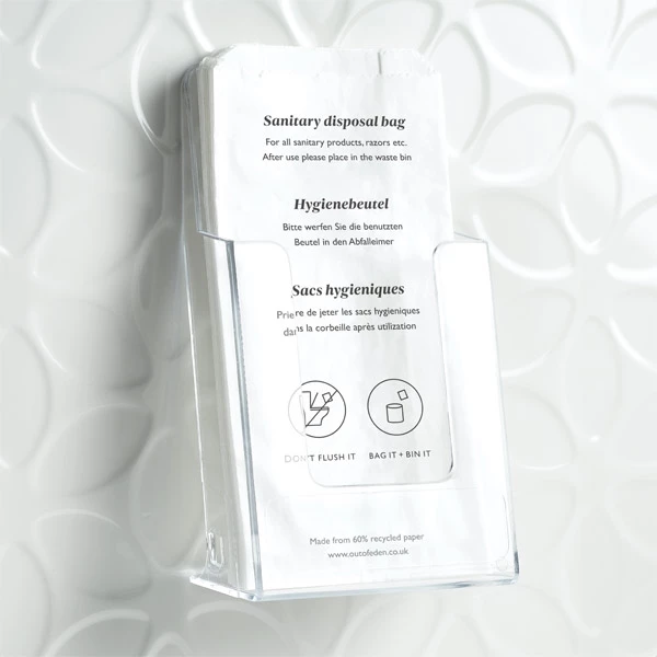 Lightweight but durable, these smart and functional sanitary bag holders can be used freestanding or fixed to a toilet or bathroom wall (fixings not included).