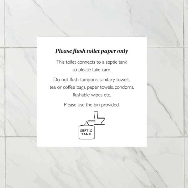Ensure your guests complete safety and keep them informed during their stay with this easy to apply septic tank notice.