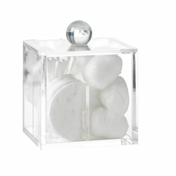 Complete with a clear crystal glass look, this container is divided into separate compartments, perfect for holding cotton wool balls or pads and cotton buds.