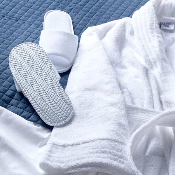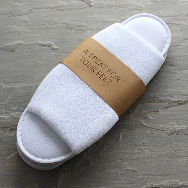 Indulging your guests with a bathrobe and coordinating slippers is a simple way for you to raise the hospitality bar so why not start with these terry towelling open toe slippers and make a good stay great for your guests?