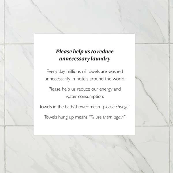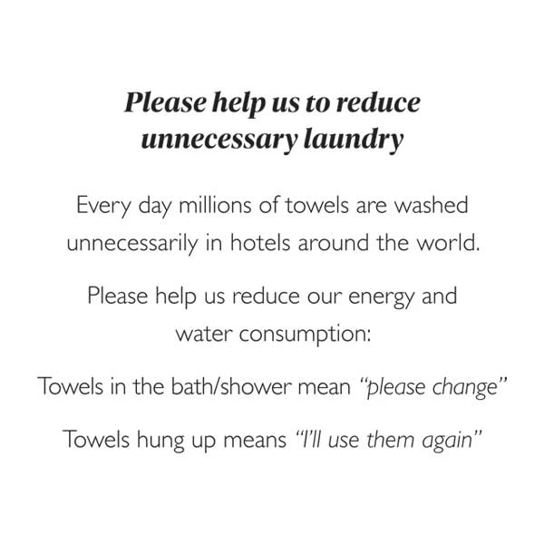 You can leave this towel conservation notice in your rooms to make it easy for guests to tell you what towels they want changing.