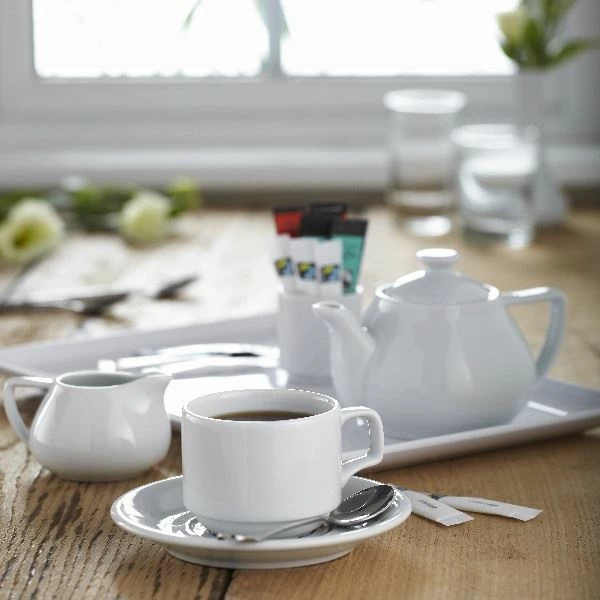 The milk jugs are microwave and dishwasher safe and the vitrifying process makes this crockery chip and scratch resistant and highly durable, ideal for your guest rooms and breakfast service.